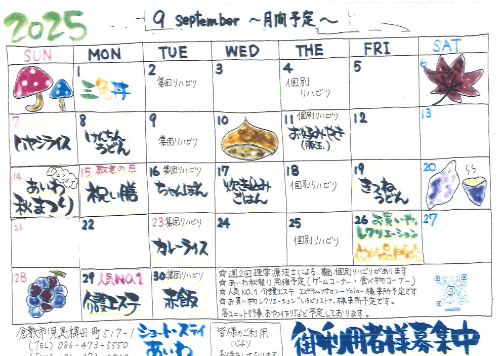 今年の秋祭りはご利用者様のご家族へお声を掛けさせてもらい、いつもより盛大に開催しました。