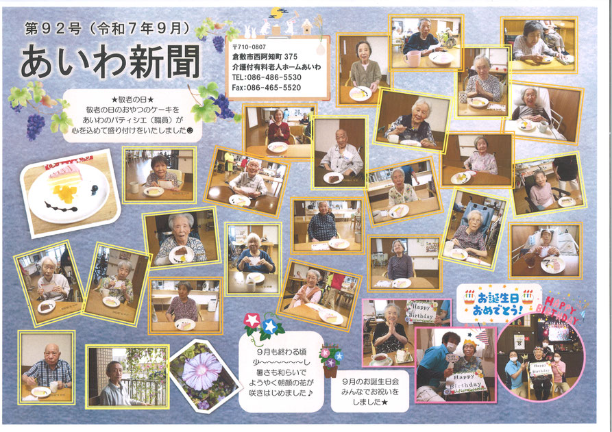 2025/10/01 あいわ新聞(♠有料老人ホーム♠)令和7年9月 ♠介護付有料老人ホーム あいわ♠ tagPlaceholderカテゴリ: 特定 コメント: 0 (ディスカッションは終了しました。)まだコメントはありません。